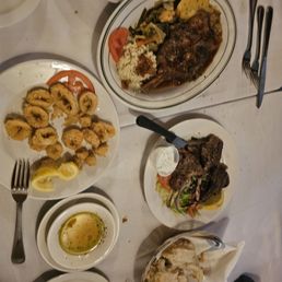 In full disclosure I had read the reviews and had full faith that the food here would be great. Typically, I order some lamb dish at a Greek restaurant or Gyros. It's a good Greek staple to try. However, we were here in Philly for the Fourth of July celebration, and were on our way to the short fireworks display at the Philly Art Museum grounds, and with the evening being a hot one, and having to walk, we didn't want to eat anything heavy. Plus, we were at the disposal of footwork and Philly public transportation, so we didn't want to carry any doggy bag. This restaurant functions like a family owned restaurant and the staff was friendly and the service was spot on. The restaurant appears bigger than what it seems from the outside. For a hot day, it was well air conditioned and comfortable to eat inside. My husband and I both ordered seafood. I ordered the octopus and he ordered the shrimp. The way it was served was with the salad on the same plate as the seafood, so olive oil and red vinegar soaked some of the octopus and shrimp too. My husband isn't crazy about vinegar, so it was a tad bit of an issue. He liked still liked his shrimp, however, which was blackened and with lemon, and maybe garlic. I sampled his shrimp dish, and for me it tasted very basic. My squid came out a bit dry and rather tasteless. It was charred or blackened but I was truly disappointed. I really feel that I would give 3 stars for the seafood if anyone were to order this. I personally feel, or a gut instinct tells me that the lamb or gyros would be great here. I only believe so because we did order another Greek staple, which is the baklava for dessert, and it was delightful, the best I've had anywhere. The baklava deserved five stars.